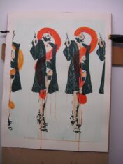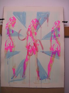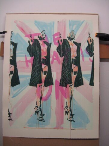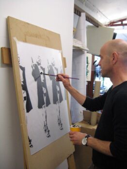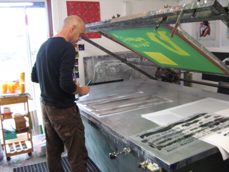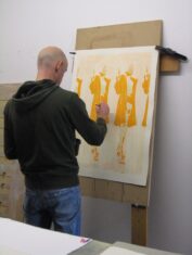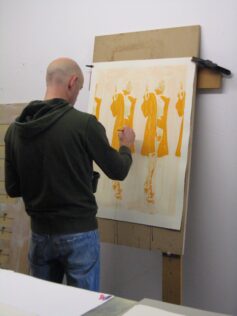 Dom Pattinson working on his screenprint editions at Hippo Screenprinters workshop.